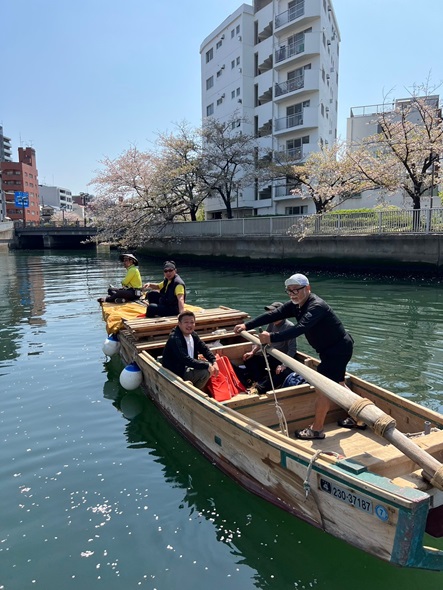 Usually, we cruise while looking at the cherry blossoms that have turned into leaves, but this year there were still some cherry blossoms left.