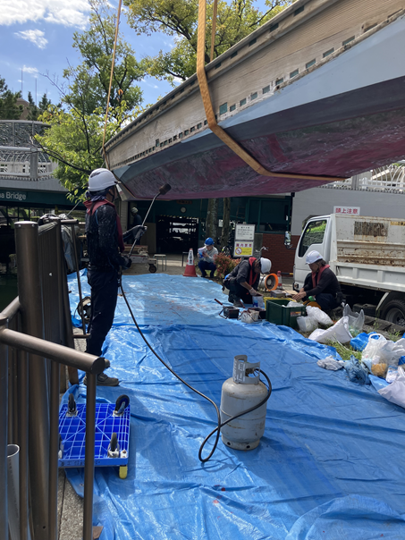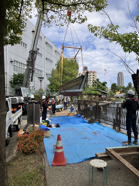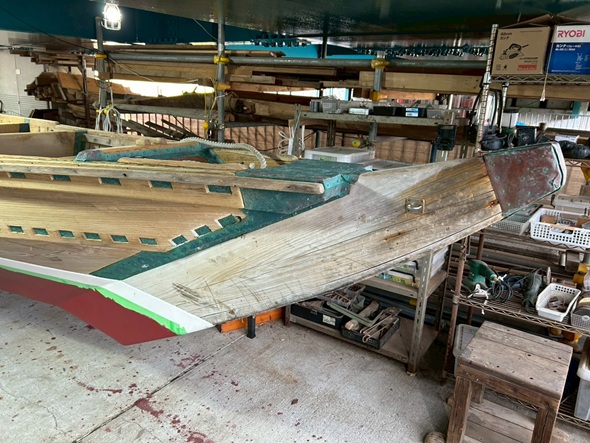 Every year, two boats are taken out of the water to perform tasks essential to the maintenance of Edo-style Japanese boats,