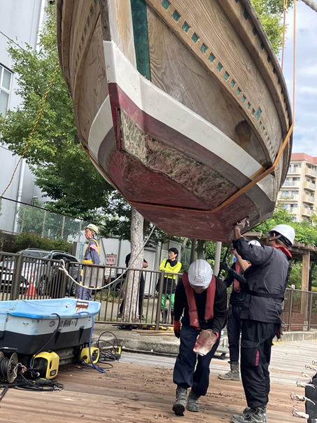As a first step, the first boat, the Yurikamome, was brought into the workshop.