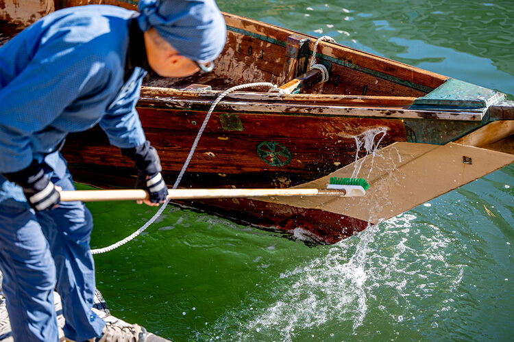 「櫓(ろ)漕ぎ」はどなたでも体験可能です。ご希望の方は乗船時に船頭へお声がけください。