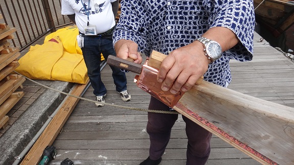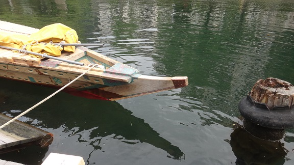 - みよしについていた古くて朽ちていた防舷材を はずし、新しく作り直しました。