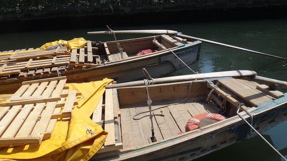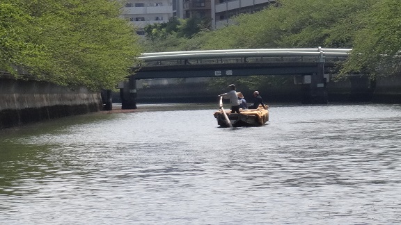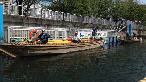 今日は天気にも恵まれ、さくら祭りで活躍した和船を横十間川親水公園に戻す。