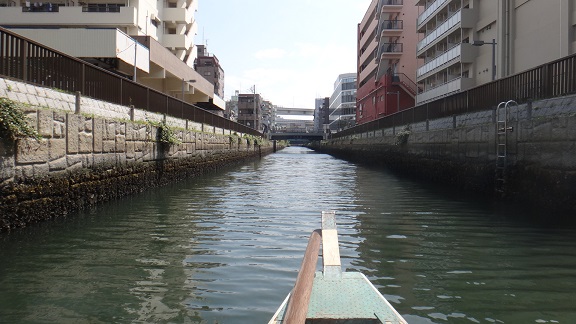 黒船橋から7艘の船を二つのグループに分け、大横橋まで漕いでいく。