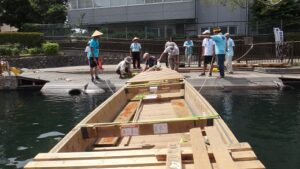 当日は猪牙舟のシートカバーが新しく来たのでサイズ等を確認して再度、調整してもらうことになりました。