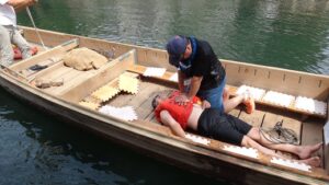 毎年実施している安全訓練・落水者救助訓練が実施されました。