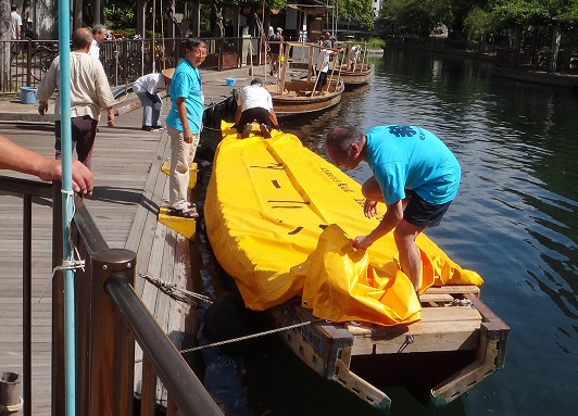 当日は猪牙舟のシートカバーが新しく来たのでサイズ等を確認して再度、調整してもらうことになりました。