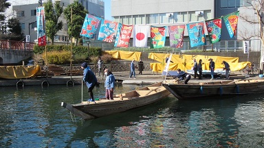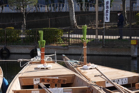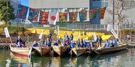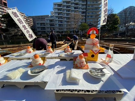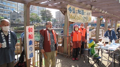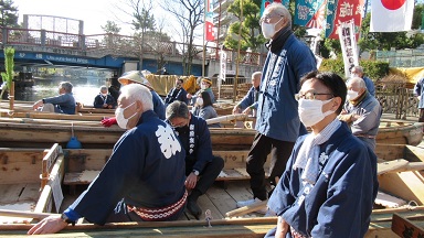 風もなく、暖かい日差しの一日。午前中に和船友の会の船頭が今年一年の安全祈願を実施。午後は、一般操船。