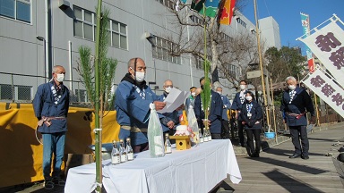 例年は城東相撲甚句会の方々に祭壇の前で相撲甚句を披露して頂いておりましたが今年はコロナ禍のため船上で披露して頂きました。