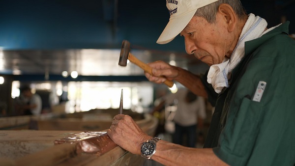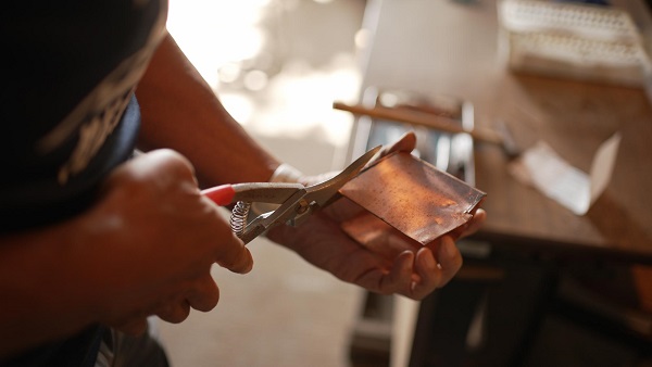 It's a very difficult job because the copper plates are cut